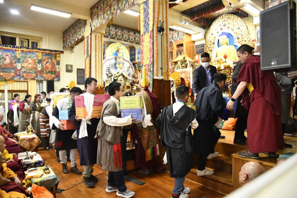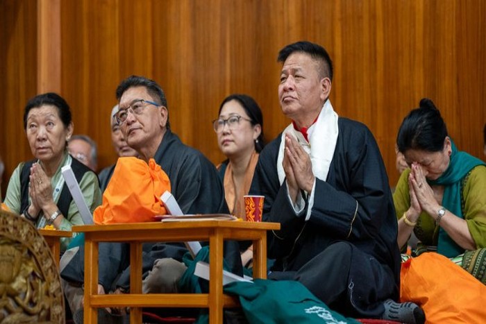2024年6月11日,在北印度达然萨拉的大乘法苑举行了由藏医历算学院(门孜康)、藏人行政中央前公务员和尊者前侍卫共同举办的长寿法会。藏人行政中央司政边巴次仁先生、门孜康代表图丹才让院长、藏人行政中央前公务员代表久美降奈先生及尊者前侍卫协会的代表拉巴次仁先生等手持洁白的哈达迎请尊者达赖喇嘛莅临大乘法苑,并向尊者奉上「切玛」以示欢迎。