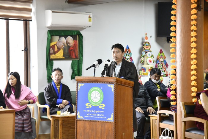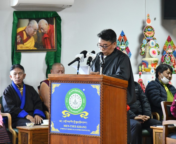 仪式于上午10:00在礼堂庄严开启。在点燃酥油灯、齐唱国歌及诵读《玉妥祈福文》的神圣氛围中,庆典正式拉开序幕。门孜康代理院长次仁诺布(Tsering Norbu)医师在年度报告中追溯了学院自1916年由第十三世达赖喇嘛尊者在拉萨创立,到1961年由第十四世达赖喇嘛尊者在达兰萨拉重建的不凡历程,重点展示了学院在提供公益医疗服务及传承传统藏医藏历学方面的卓越成就。