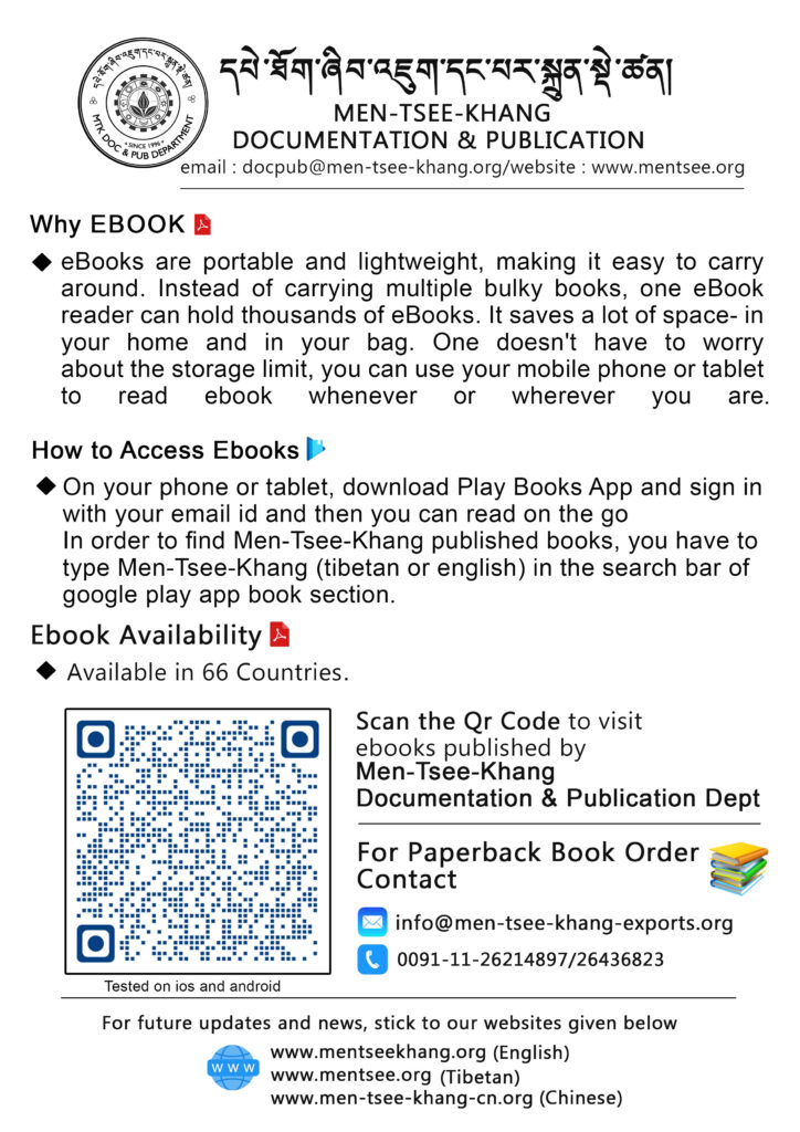 门孜康出版了很多有关藏医学和藏历天文学的书籍。这些著作都是许多学者、藏医专家和藏历从业者所撰写。 我们以数字形式提供了《门孜康》图书出版物,以便有兴趣读者的访问,这适合于当今时代的阅读方法。你会发现很多类似གསོ་རིག་རྒྱུད་བཞི། 和དཔལ་ལྡན་རྒྱུད་བཞིའི་སྡོང་འགྲེམས་ཕྱོགས་བསྡུས། 的书,还有很多著作都已电子版的方式提供。