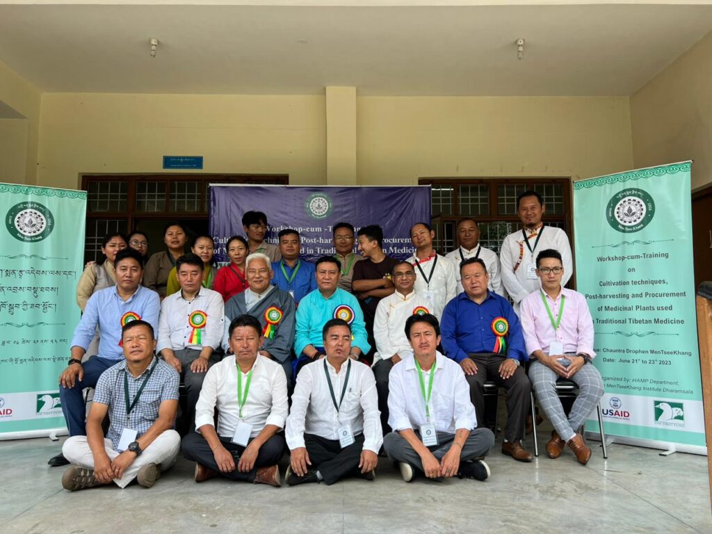 2023年6月21日至23日,在门孜康迥德拉举办了主题为“药用植物的栽培、采后和采购技术”的培训。这次的培训由门孜康高海拔药用植物部 (HAMP)与藏人行政中央内政部农业局协商组织。参加培训的人员来自印度各地不同农业气候区的农业推广官员 (AEO),拉达克和印度南部的对种植有兴趣的人、以及拜拉库佩有机研究和培训中心(ORTC)的工作人员,共 21 名参与者参加了培训。